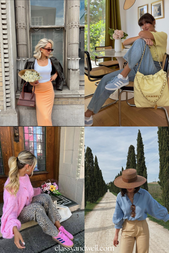 But that’s not all—suede is back in ways you wouldn’t expect (say hello to Adidas Gazelles), animal print is prowling its way into every wardrobe, and elevated athleisure is here to make your morning coffee run look effortlessly chic. And let’s talk color—pastels are no longer just soft and sweet; they’re being mixed and matched for a fresh, unexpected twist.