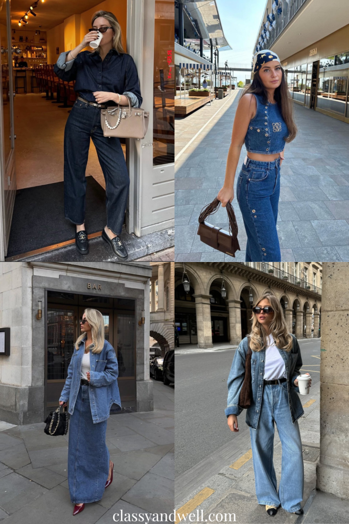 Denim never goes out of style, but this year it’s doubling up in a big way. Whether you’re rocking an all-dark denim ensemble, a vintage-inspired denim-on-denim set, or layering different washes, the key is to make it look effortless. Pair structured silhouettes with relaxed fits for that “just threw this on” cool factor. The double (or triple) denim trend is here to stay, so go all in.