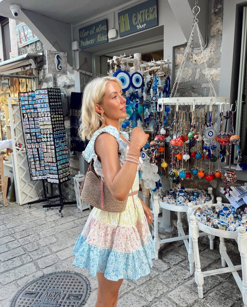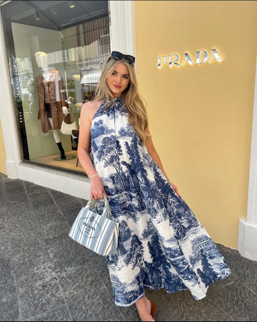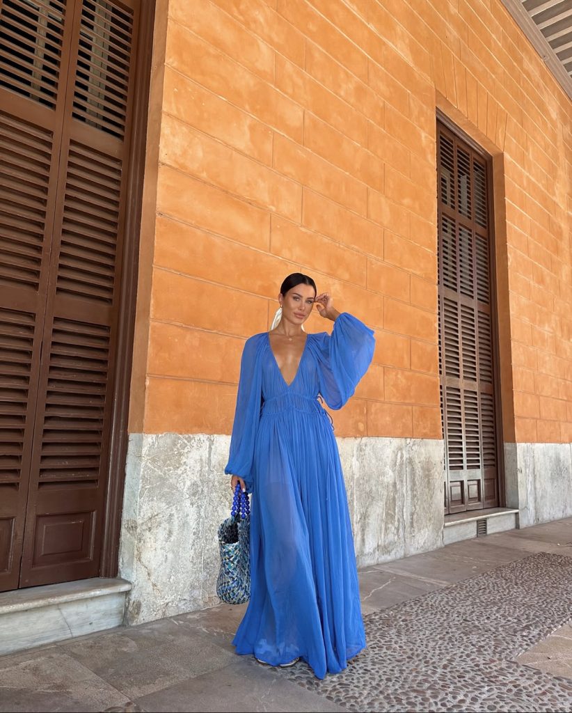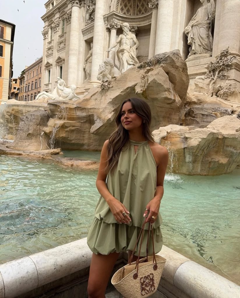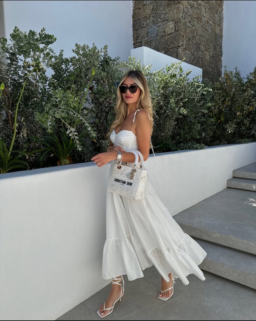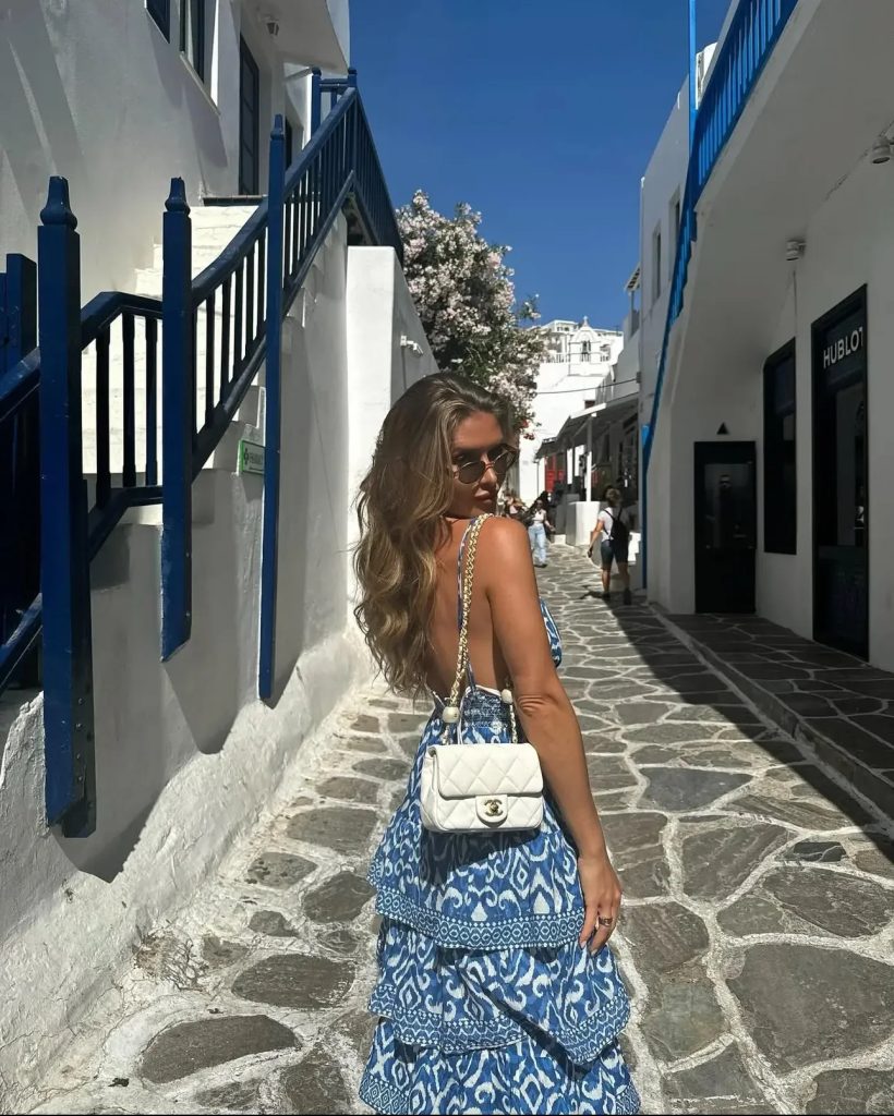 Nothing says “Greece” quite like a flowing blue and white dress that mirrors the waves of the Aegean Sea. This breezy maxi is perfect for strolling through Santorini’s iconic white-washed alleys or enjoying a sunset dinner with a glass of local wine. Pair it with oversized sunglasses and a structured bag for that effortlessly elegant vacation look.