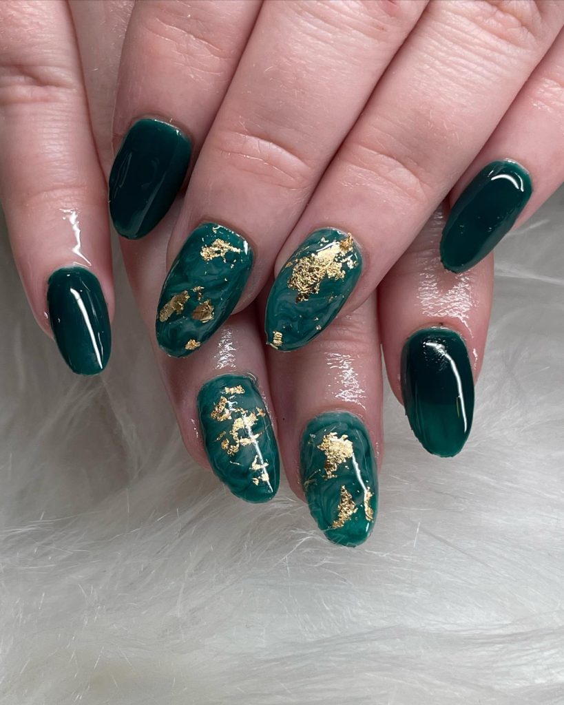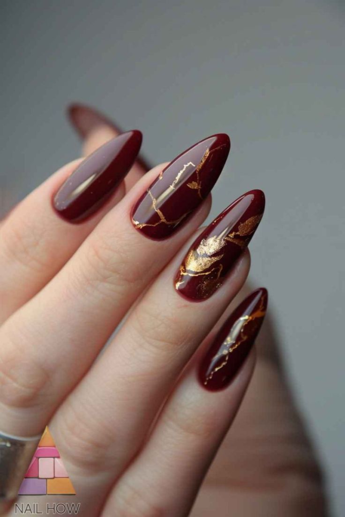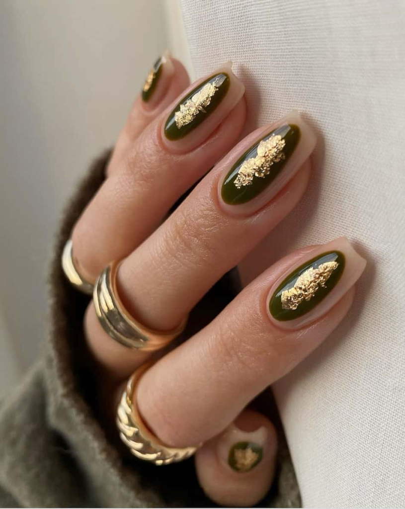 1. Golden Holly Christmas Nails