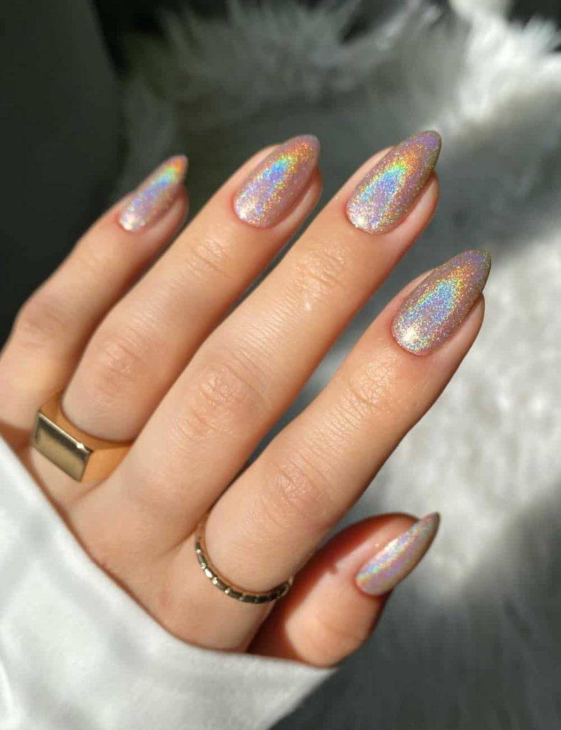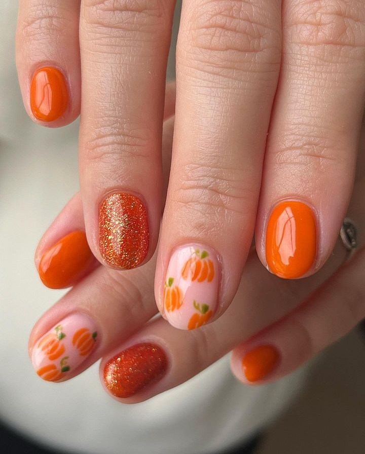46. Holographic Pumpkin Nails