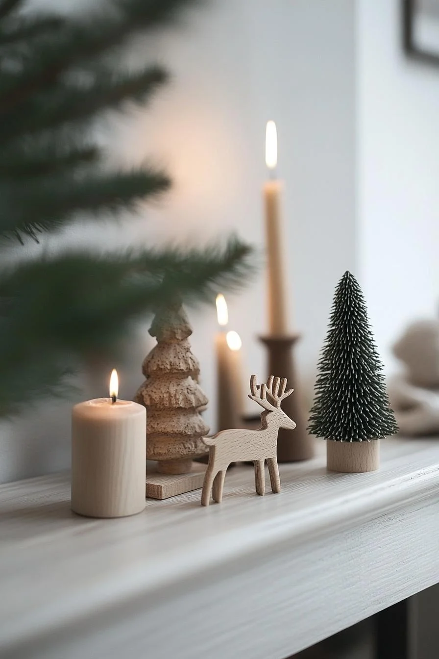 I absolutely love this look—it’s exactly the kind of cozy yet refined decor I’d recreate in my own home! The neutral tones are so soothing, and each little detail, from the soft trees to the rustic stars, brings a touch of understated holiday magic. I’m especially drawn to the mix of textures here, like the woven basket and the wooden accents—they give such a warm, natural feel. It’s minimal yet festive, a perfect balance for anyone who wants a calm and chic holiday vibe. Plus, those beautifully stacked books make the whole setup feel like a stylish holiday library!