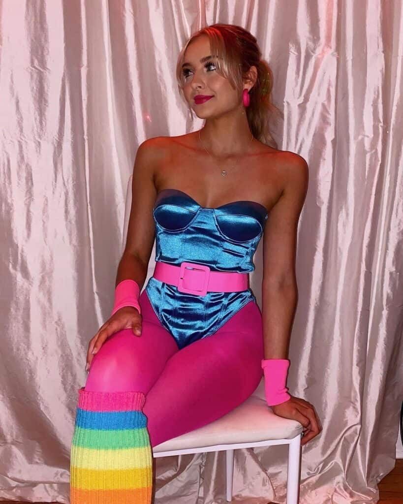 This is another iconic option inspired by the Barbie movie. Although this outfit existed way before the film, as it was classic 80s women’s attire, it has become increasingly popular since the Barbie film.