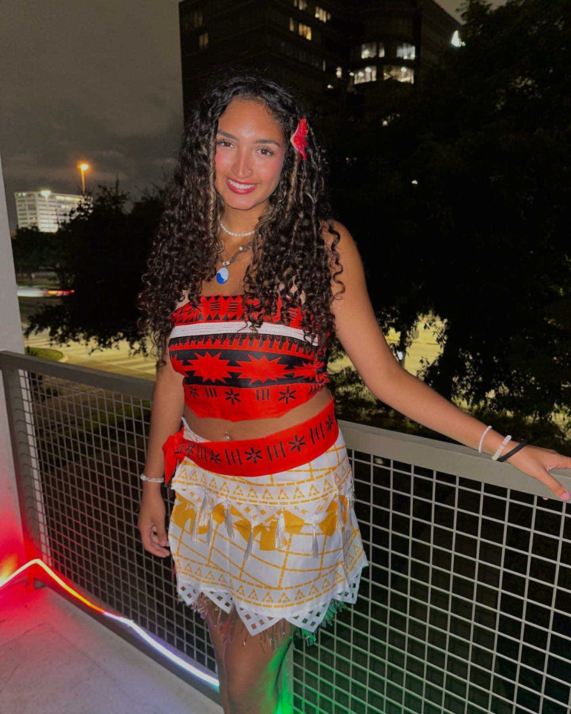 I just can’t get over how cute and stunning this mermaid Halloween costume is! With a tan like that, paired with a purple outfit and makeup, you’ll definitely have guests picking their jaws up off the floor!