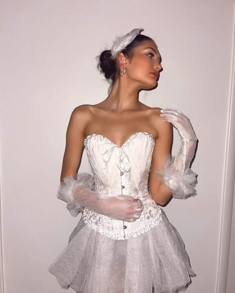 Transform into a vision of grace and elegance with a white swan costume! This enchanting look captures the ethereal beauty of the swan, with its delicate feathers and flowing white ensemble.