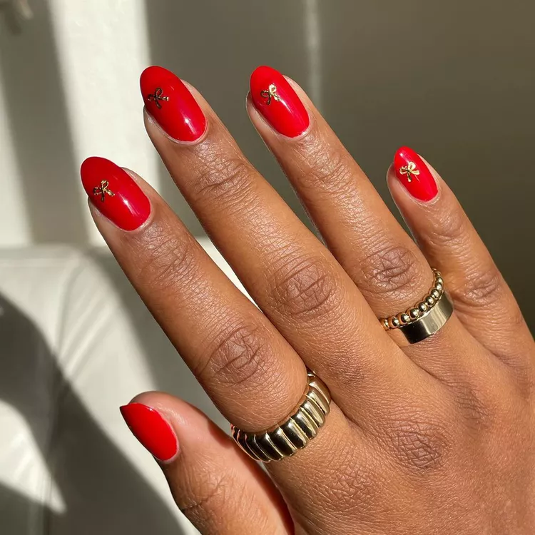 5. Red French Tips with a Festive Bow Accent