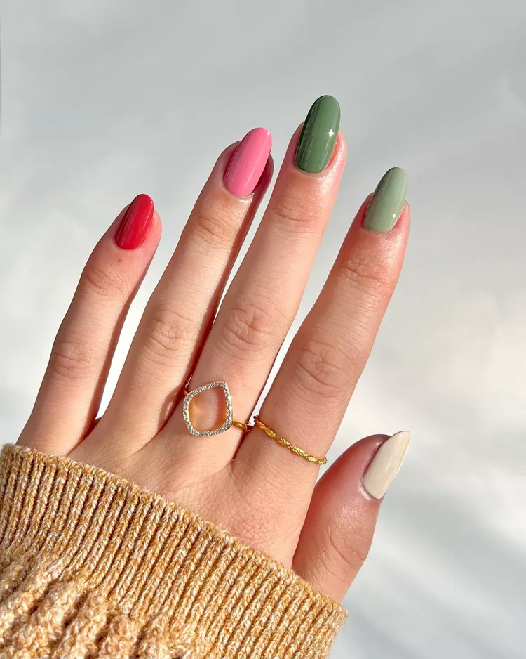 These nails bring a soft, unexpected twist to holiday vibes with a blend of warm, muted tones. From the deep red to the soft beige, each nail has its own personality, making this design feel playful yet cohesive. Perfect for someone who wants to keep things festive but with a more relaxed, cozy feel—this palette is like the perfect winter sweater for your nails!