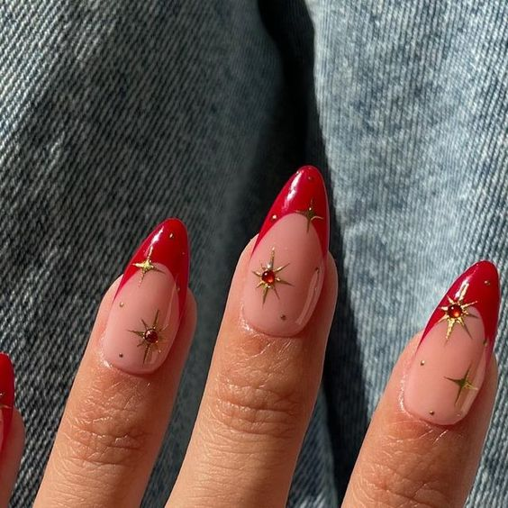 These bold red French tips with golden star accents are perfect for anyone looking to add some holiday dazzle to their nails. The vibrant red brings all the Christmas cheer, while the delicate gold stars create an elegant, festive vibe. It’s a glamorous look that strikes a balance between fun and sophistication.
