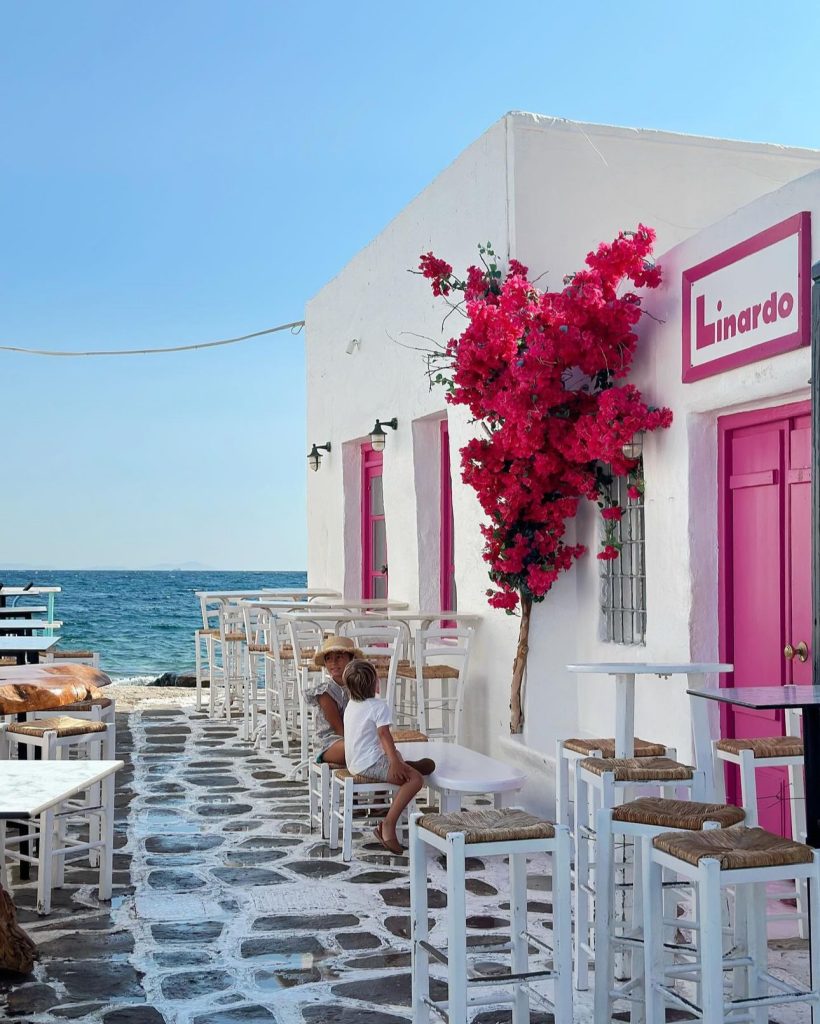 For those days spent exploring charming Greek villages, a lightweight, airy outfit is a must! A bright pink crop top adds a playful pop of color, while the white linen pants keep things cool and comfortable. Add a woven sun hat and some comfy sandals, and you’re ready for a day of boutique shopping and café hopping!
