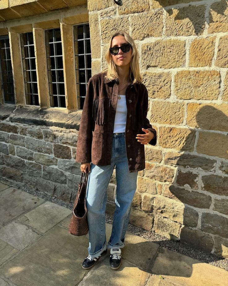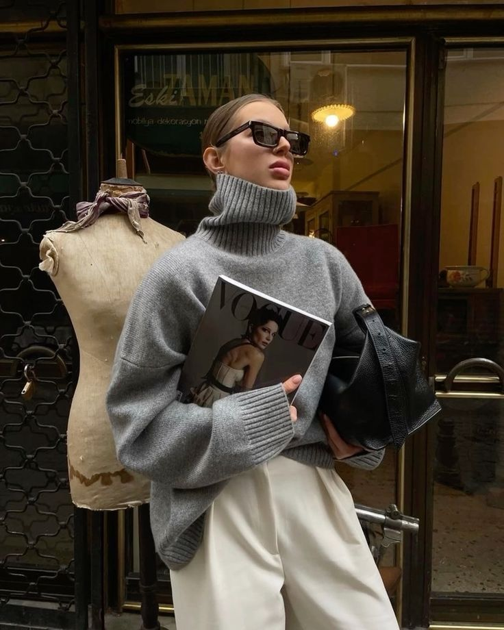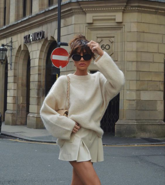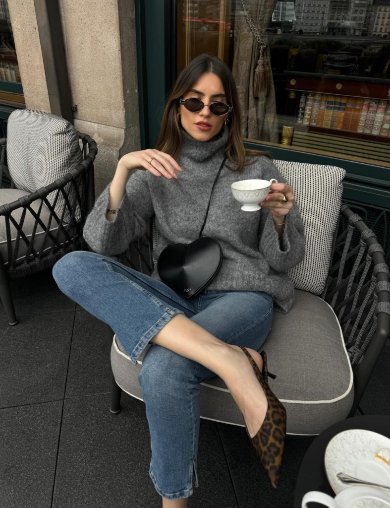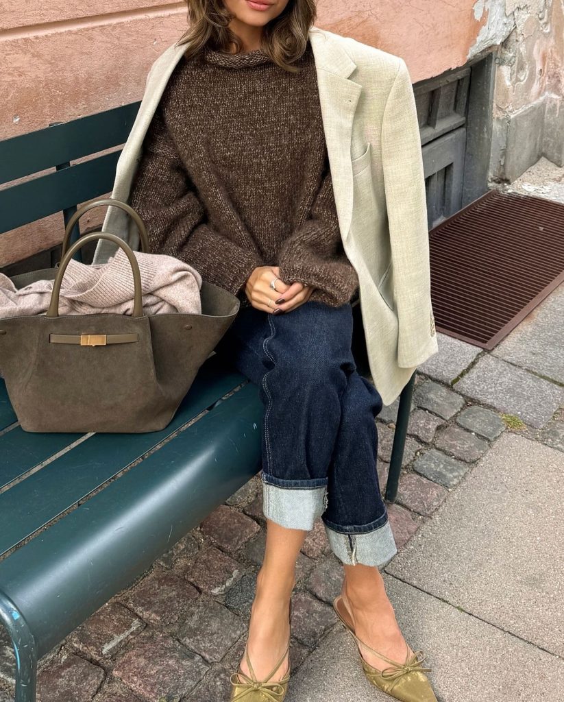 An oversized sweater is the epitome of cozy comfort, while still looking effortlessly chic. In this outfit, the chunky knit in a warm brown tone pairs perfectly with rolled-up jeans and a light blazer, creating a relaxed yet stylish ensemble. It’s the kind of sweater you can just sink into, but with the right pieces, it feels polished enough for a day out. The oversized fit adds a modern, laid-back vibe, making it ideal for those cooler days when you want to stay warm without sacrificing style. Isn’t it the perfect blend of comfort and chic?