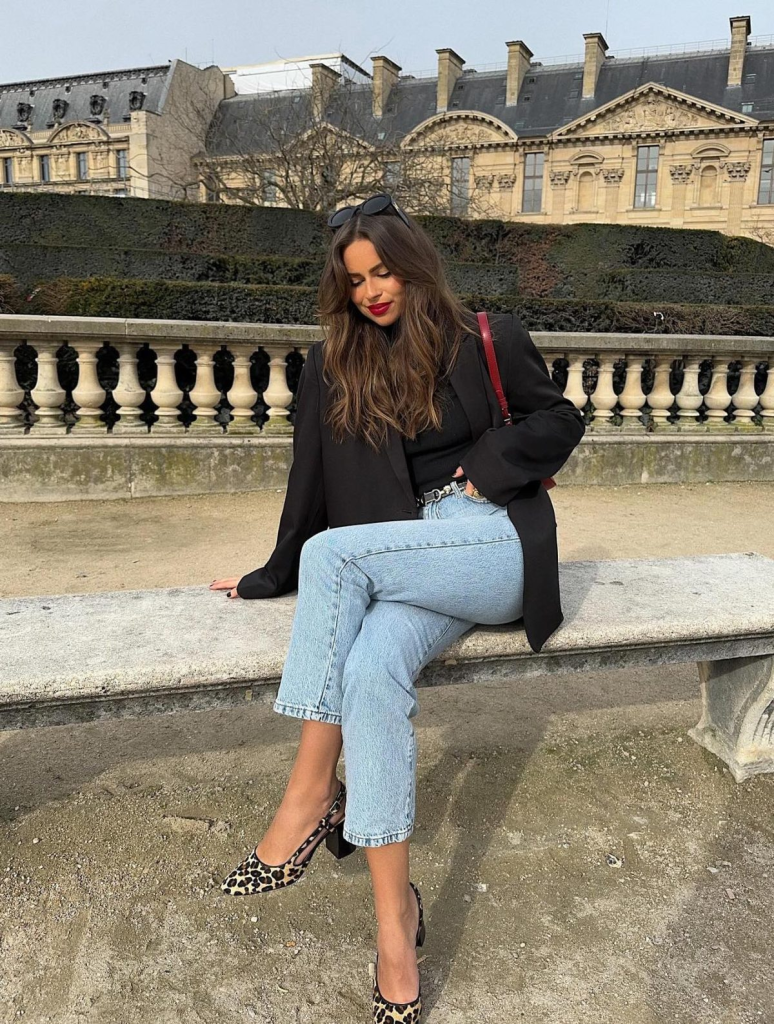 There’s something timeless about a good pair of high-rise straight jeans, and they’ve become a true wardrobe essential for achieving that effortlessly chic Parisian look. The high waist adds a flattering shape, while the straight-leg cut keeps things classic and comfortable. Whether you’re pairing them with a simple white tee, like in this look, or dressing them up with a blazer, high-rise straight jeans always have that “cool without trying too hard” vibe. They’re perfect for everything from casual weekend strolls to a laid-back day in the city. I love how versatile they are!