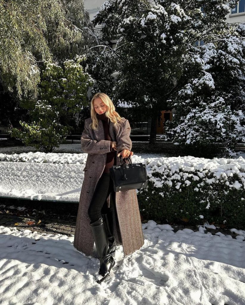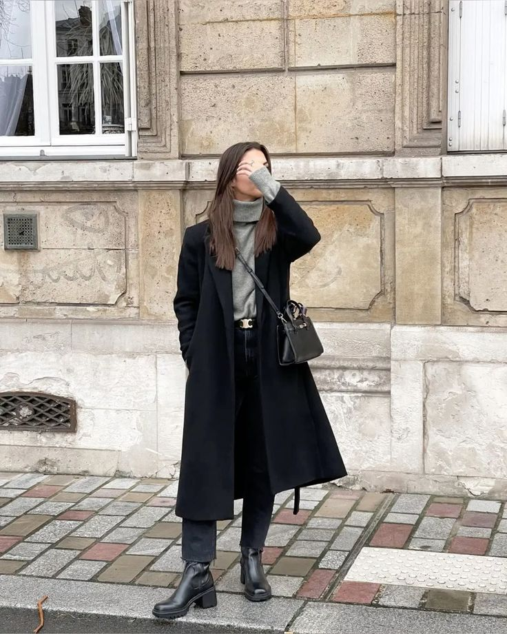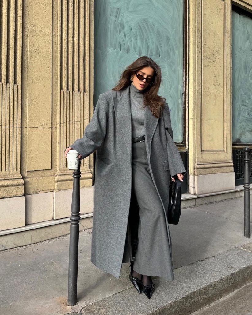 A wool coat is the ultimate go-to for those colder days when you still want to look polished and put-together. In this look, the long, structured wool coat adds an air of sophistication while keeping you cozy. Whether you’re heading to work or strolling through the city with a coffee in hand, a wool coat is the perfect outer layer to elevate any outfit. It’s a timeless piece that can be paired with everything from tailored trousers to casual jeans, giving you that chic, effortless winter elegance.