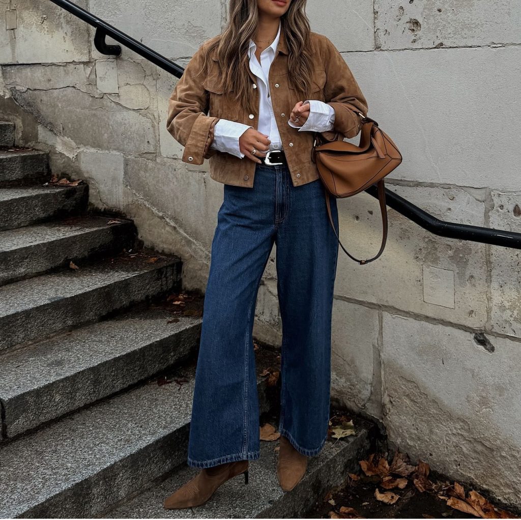 A structured tote bag is a Parisian wardrobe essential for both style and practicality. This rich brown leather tote adds a touch of sophistication to any look, while also being spacious enough to carry all your daily essentials. I love how it complements the dark denim outfit, balancing elegance with a bit of edge. Whether you’re heading to work or strolling through the city, a chic tote like this elevates the entire ensemble. Isn’t it the perfect combination of function and fashion?
