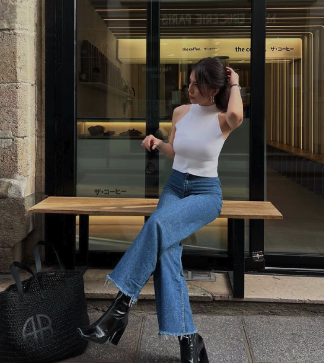 Black ankle boots are an absolute wardrobe must-have, bringing a sleek, polished touch to any look. In this outfit, the boots add a bit of edge to the simple tank top and jeans combo, making it feel more elevated. Their versatility is unbeatable—whether you’re pairing them with jeans, dresses, or skirts, they instantly pull the whole look together. Plus, the heeled style gives that perfect mix of comfort and sophistication.