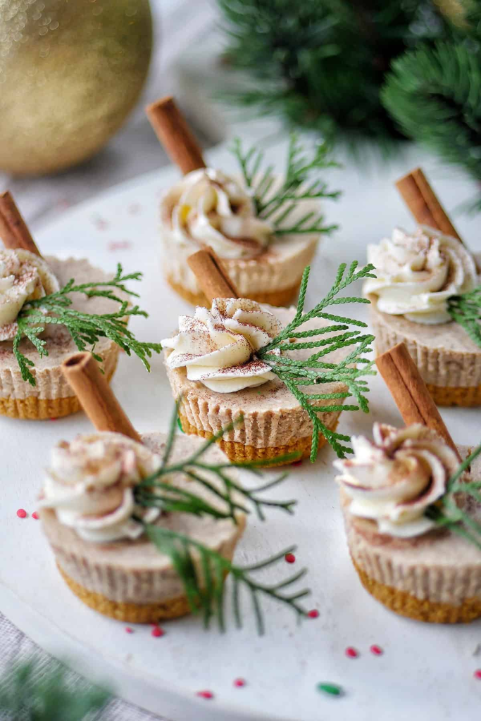 These No-Bake Gingerbread Spice Cheesecake Cups are the perfect festive treat to whip up in no time! Ready in just one hour, they’re a smooth and creamy cheesecake dessert with all the warm spices of gingerbread. With no powdered sugar, each bite is pure, unadulterated holiday bliss! Ideal for Christmas dinners and parties, they’re a last-minute dessert that’ll make you look like a pro. Plus, those cinnamon stick and greenery garnishes give them such a charming holiday touch!