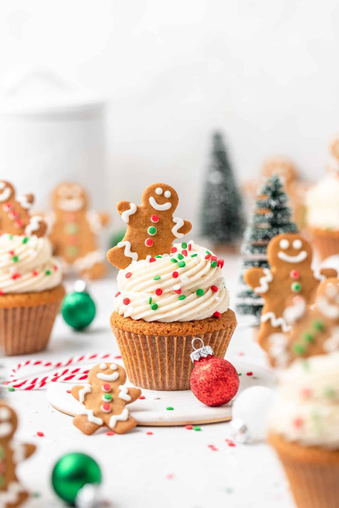 These delightful brown butter gingerbread cupcakes bring festive charm to any holiday dessert table. Topped with a luscious maple cream cheese frosting and finished with mini gingerbread cookies, they’re the ultimate Christmas treat! Perfectly spiced and irresistibly cute, these are perfect to make with your kids!